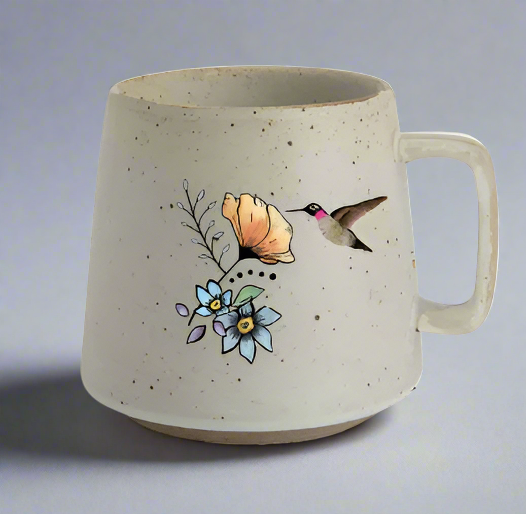 Featuring a delicate flower and hummingbird illustration on one side and the heartfelt message “This Grandma is Loved” with floral accents on the other, this mug is both meaningful and charming. Designed and designed by a Colorado Artisan, it showcases lifelike aspen, birch trees, and cardinal details that add nature's touch to every sip.