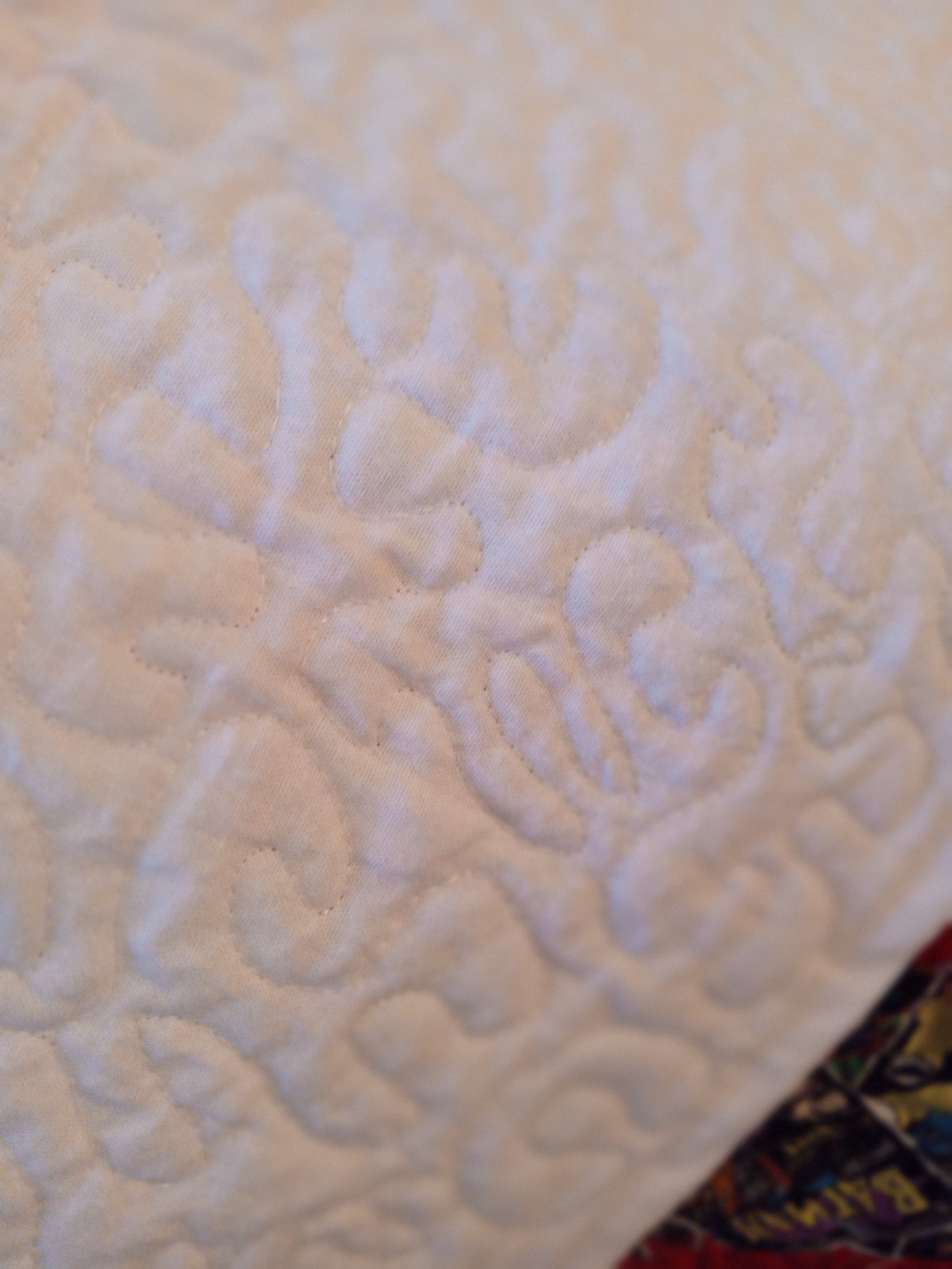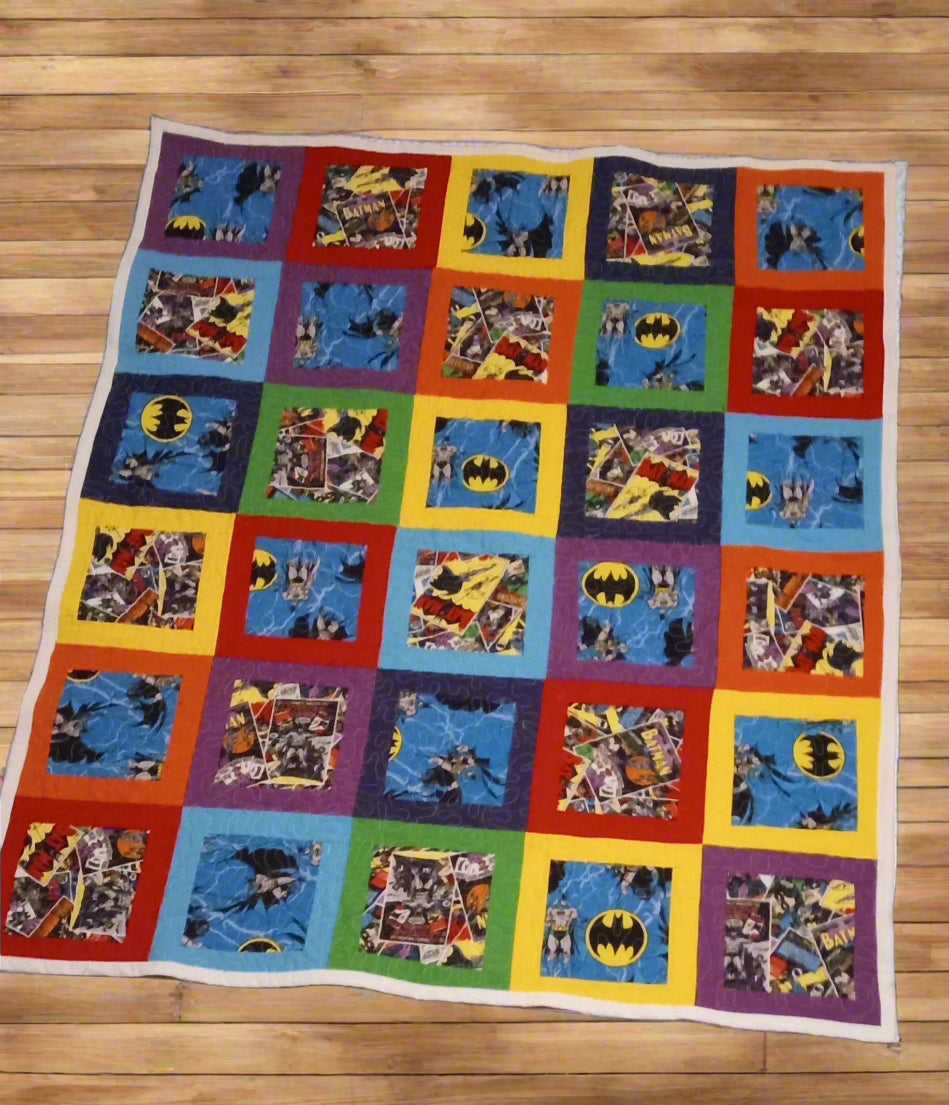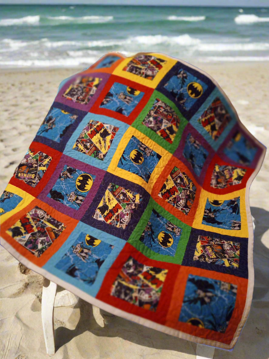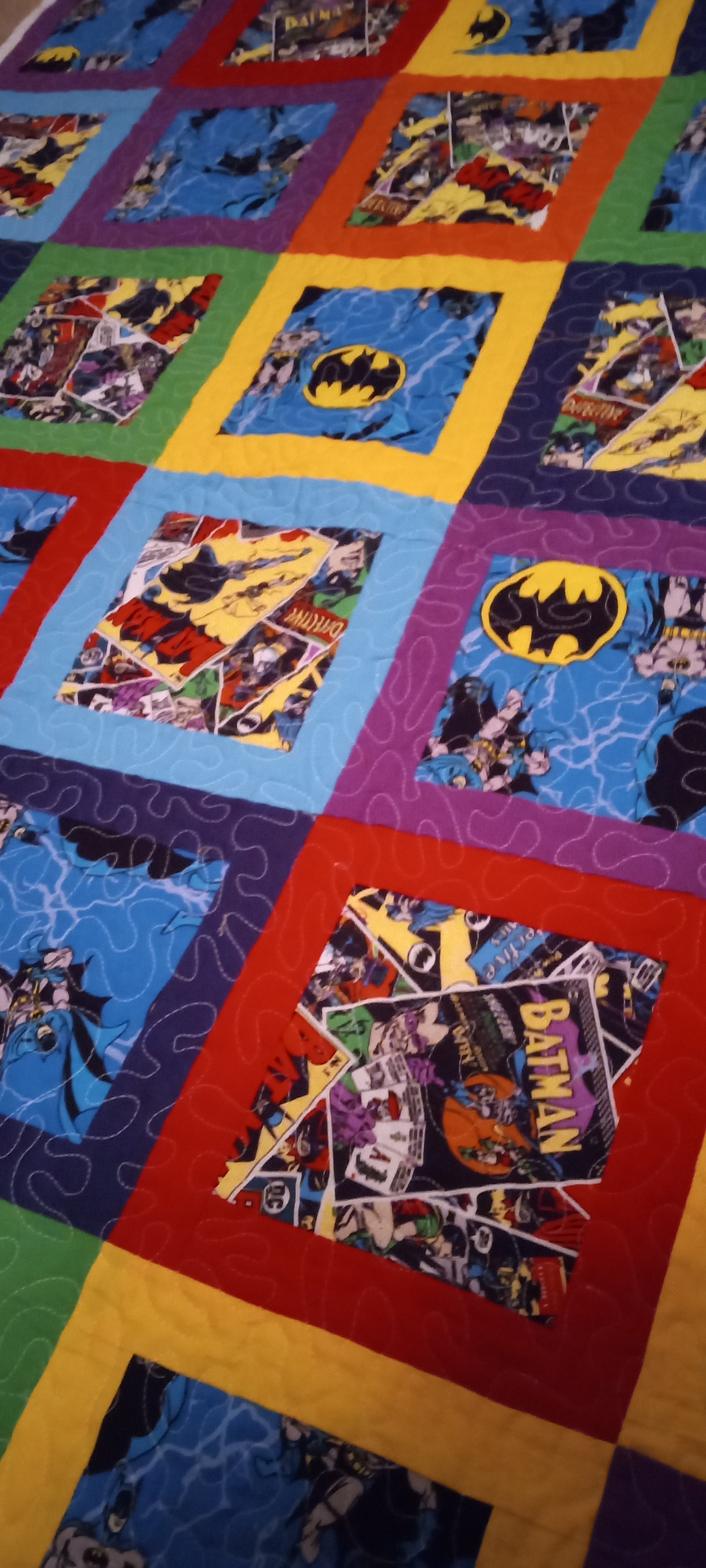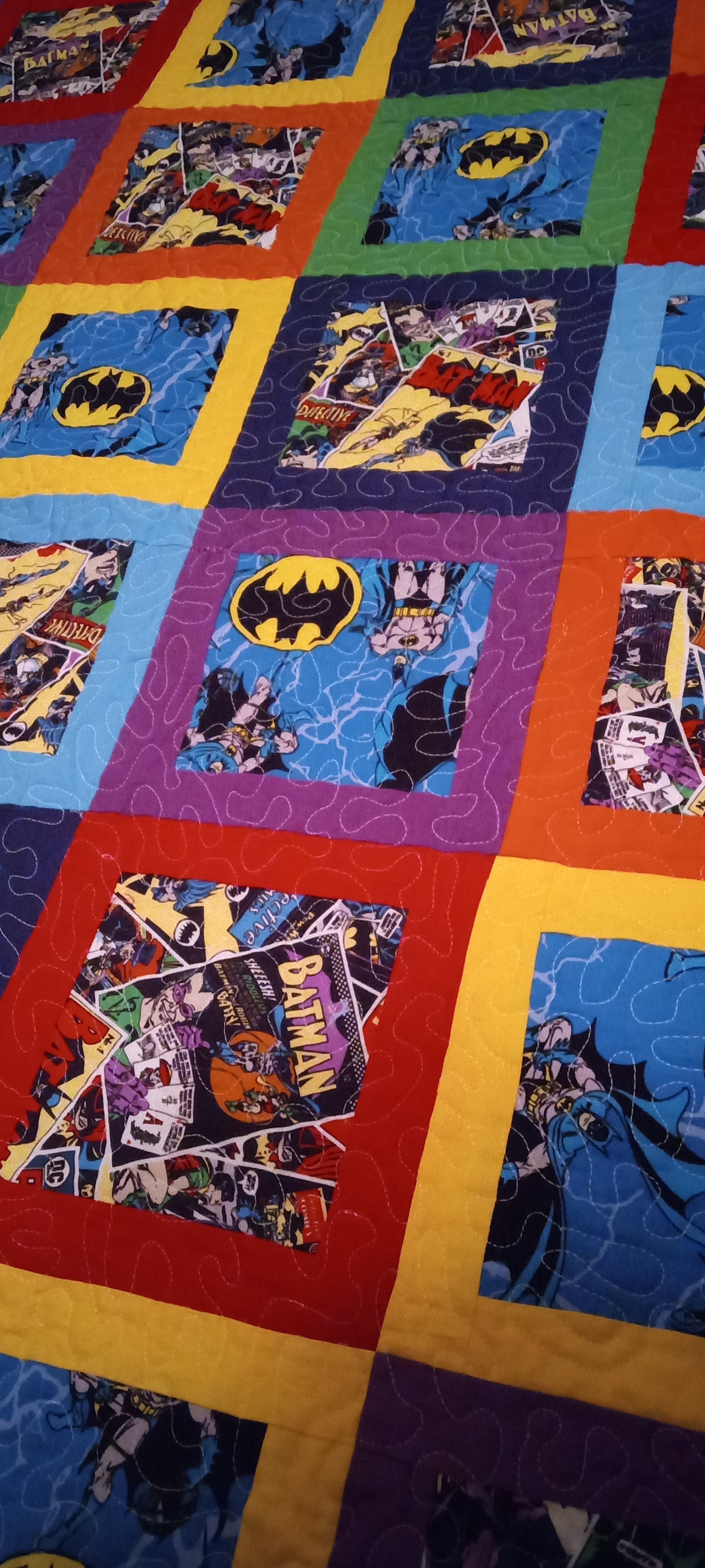 vibrant. The quilt is large enough for him to use for a nap, and yes, even a very long Batman Cape. I've never seen novelty quilts before. I love the idea. Thanks so much