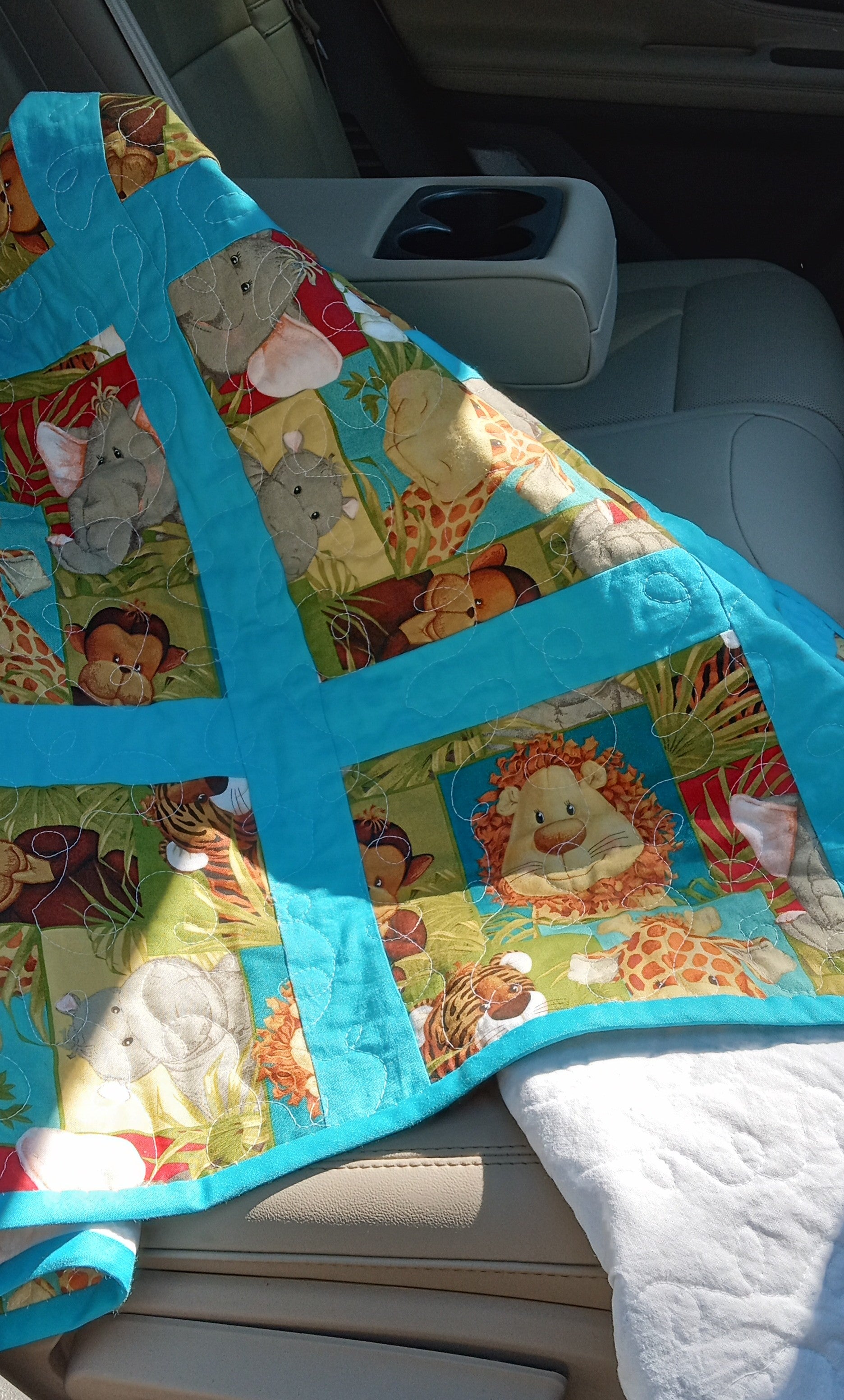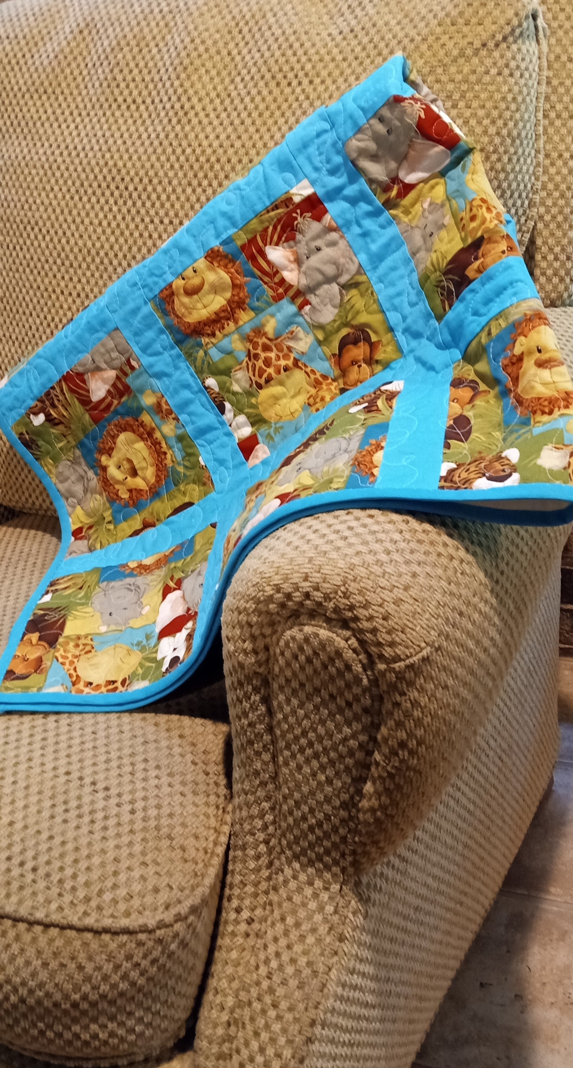 From baby showers to “just because” gifts, the Animals Out of the Blue quilt is a versatile, practical, and adorable choice for little ones to snuggle under.