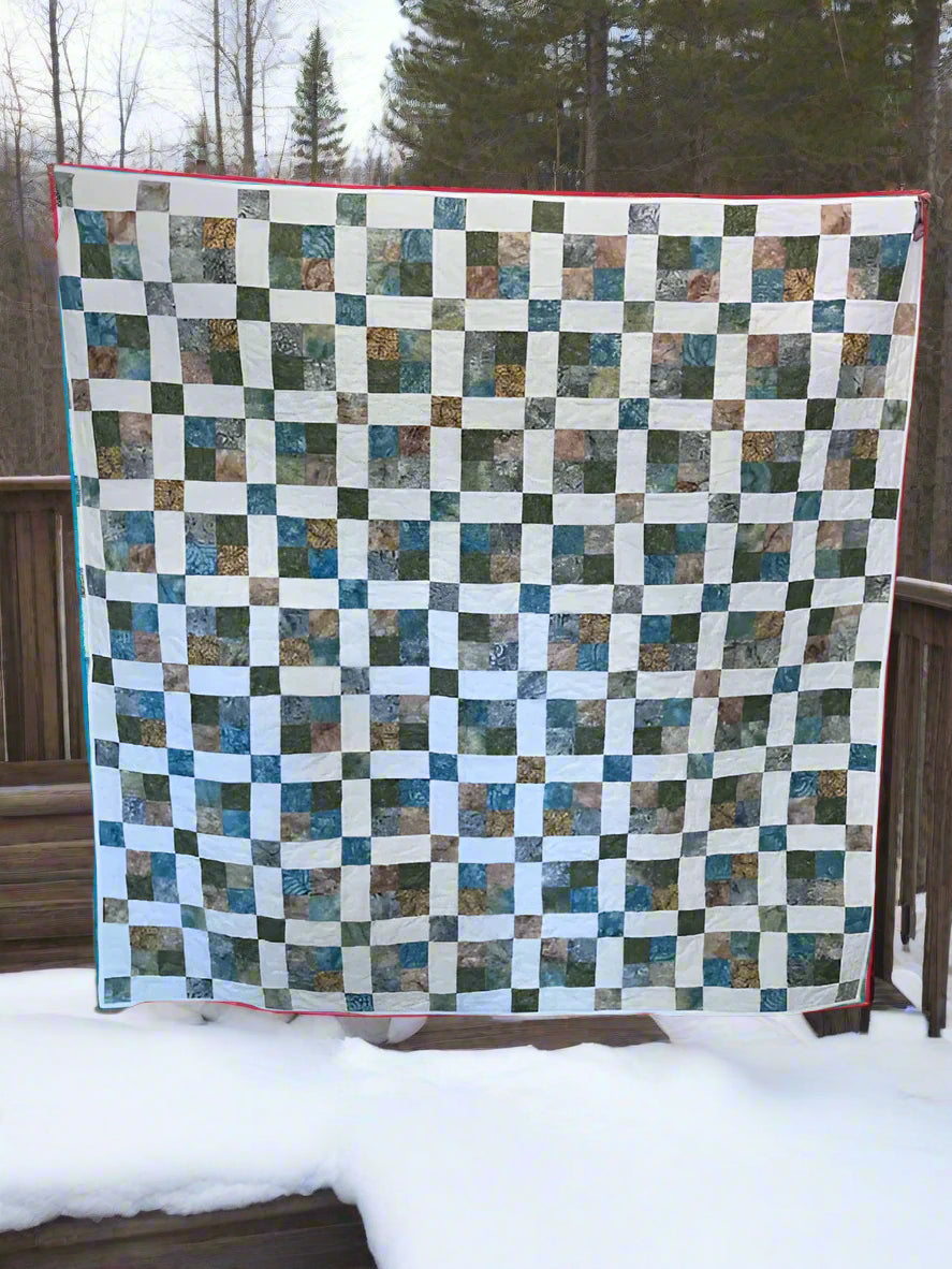 Finished with a clean white binding, the quilt has polished my modern look. Crafted with the Poly cotton batting, this quilt is lightweight yet cozy---ideal as a throw, decorative or accent or even a baby quilt measuring. It's a versatile size that suits a variety of spaces and uses.