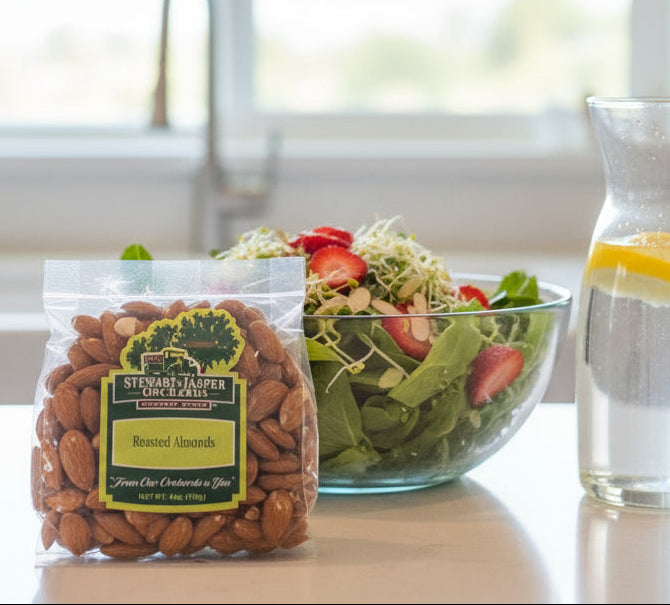 Enjoy the simple pleasure of fresh-roasted almonds, crafted with care right here in the United States. Each 4-ounce snack bag is filled with perfectly roasted California almonds that deliver a warm, nutty crunch and naturally satisfying flavor.